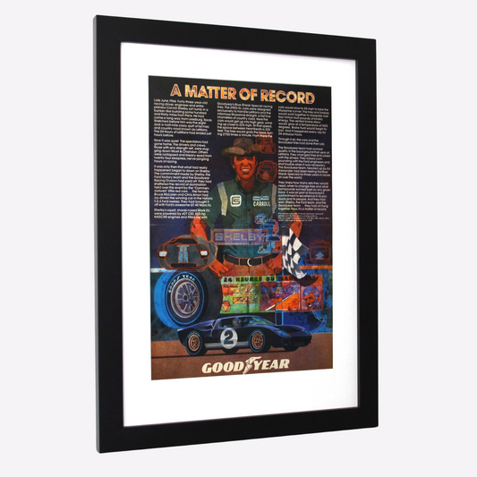 1960s Carroll Shelby Goodyear “A Matter of Record” Racing Ad – Framed 16x22
