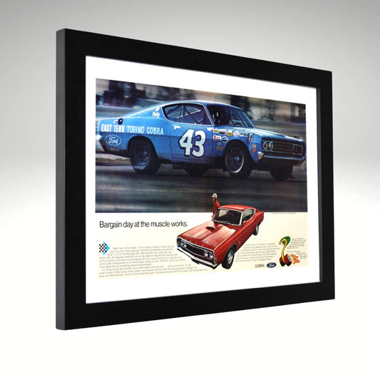1969 Ford Torino Cobra Ad – Richard Petty #43 NASCAR – Framed 15x20