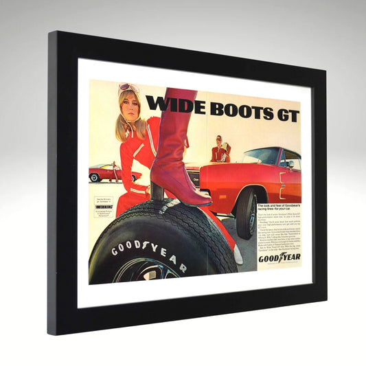 1960s Goodyear Wide Boots GT Retro Ad – HEMI Charger – Framed 15x20