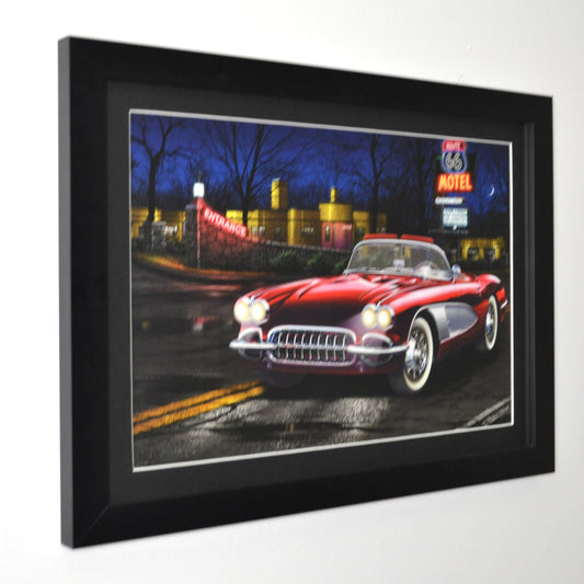 Route 66 Corvette Framed Wall Art – 16x22 Americana Print