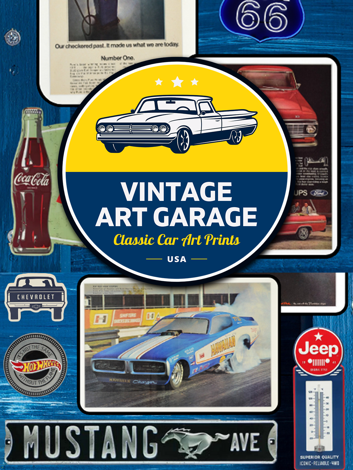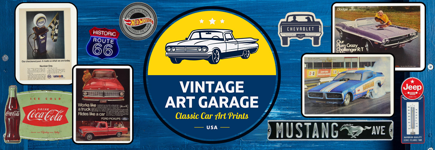 Welcome to our Vintage Automotive Art Gallery, where car and truck enthusiasts can immerse themselves in the nostalgia of classic cars and the open road. Discover garage art, man cave decor, and retro masterpieces that capture the essence of hot rods, Route 66, and the thrill of vintage automobiles.